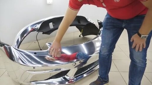Porsche 718 Boxster S✔️ Оклейка переднего бампера в зеркальный Хром