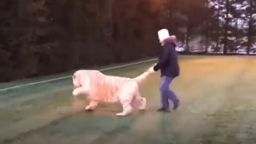 Полосатый Месси: тигра научили играть в футбол