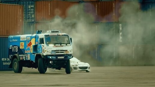 Парный дрифт: Mazda RX-8 и КАМАЗ