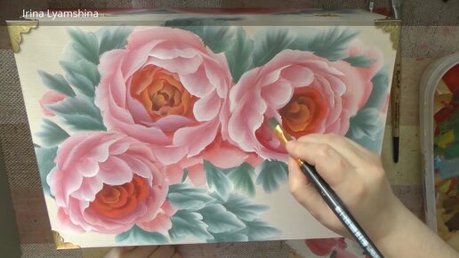 Роспись цветов на бежевой шкатулке
