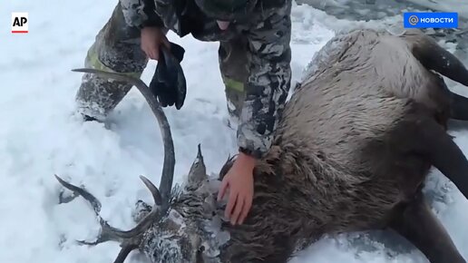 В Бурятии спасли замерзшего оленя