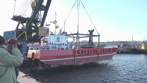 Современную грузопассажирскую баржу спустили на воду в Приморье