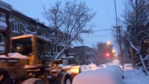 Трактор зимой на улицах Монреаля