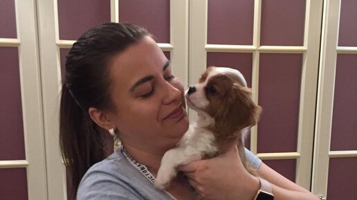 Щенок Кавалера встретил маму!