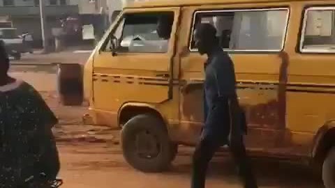 Пешеход помогает сломанному микроавтобусу