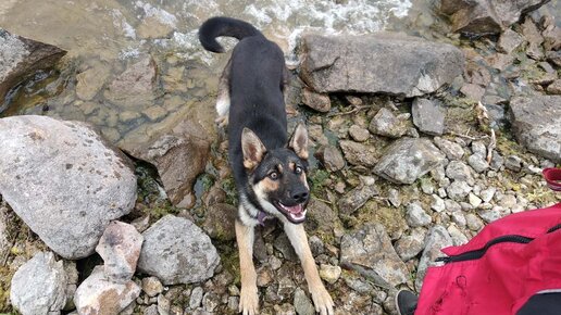 Моя собака учиться нырять. Цель - достать метеорит в озере Чебаркуль