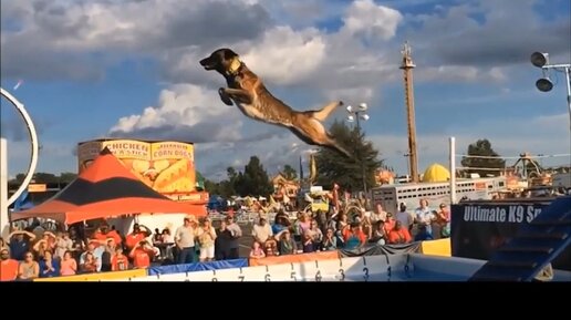 Прыжок в длину... Малинуа (Бельгийская овчарка).
