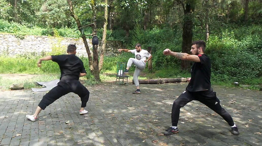 иностранцы на кунг фу тренировке дзен храма У Вэй