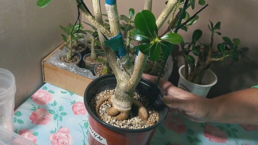 🌺 Бонсай из адениума продолжает приживаться! 🌺 Результат прививки растения 🌺