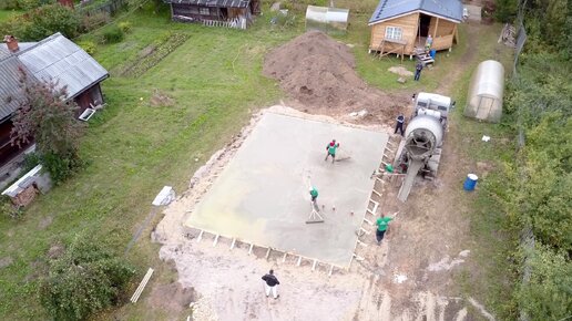Заливка монолитного фундамента в деревне Пятница, Новгородской области.