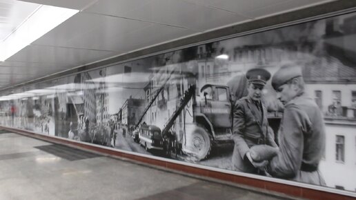 Панно, посвященное пожарным на новой станции метро Проспект Славы