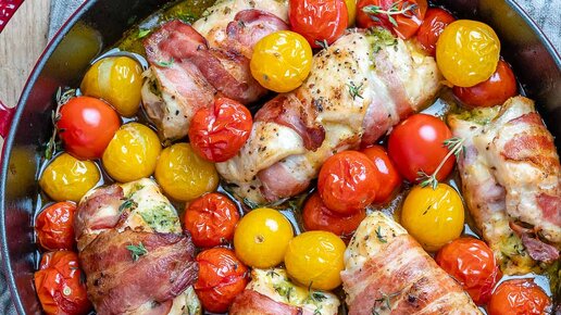 На таких блюдах можно худеть с удовольствием : кето-обед из куриных рулетиков с беконом, сыром и соусом песто.