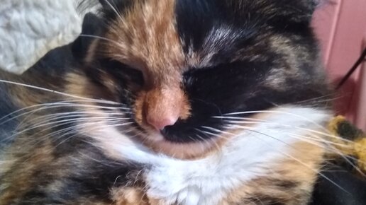 Кошка не побоялась гулять в лесу с хозяйкой.