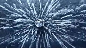 Кусок урановой руды в камере Вильсона, позволяющей увидеть движение альфа-частиц.