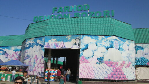 Базар в Ташкенте ранее утро, еще прилавки не все заполнены Корейские салаты, продавцы готовятся к работе.