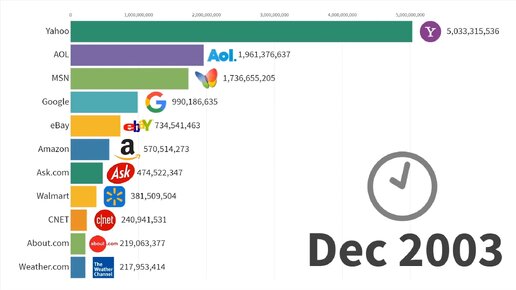 Самые популярные сайты 1996-2019 гг. за 2 минуты.