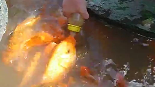Кормление рыбок в парке Винперл в Нячанге Вьетнам.