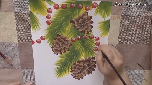 Новогодний декор: рисуем хвойные ветки