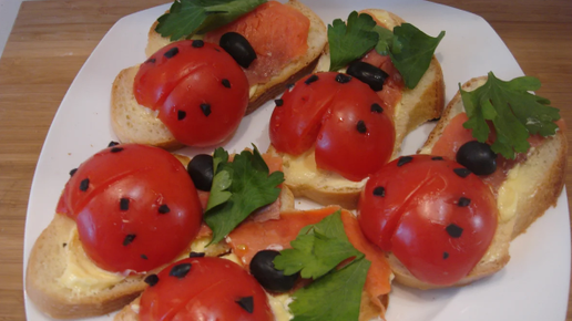 Бутерброды "Божья коровка". Просто, вкусно и красиво. Блюдо, достойное праздничного стола.