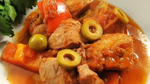 Рецепт заводного испанца: готовим курочку с оливками и сладким перцем