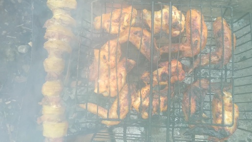 Такой шашлык я ещё не ел. Картофель с салом и пикантные крылышки