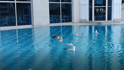 Риксос Сангейт Бельдиби Птицы купаются в бассейне. Вот такая зима