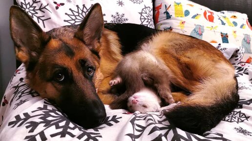 Дружба немецкой овчарки и хорька
