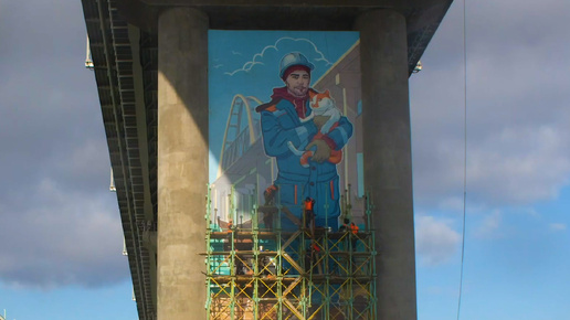 Гигантское граффити нарисовали на опоре Крымского моста. Timelapse
