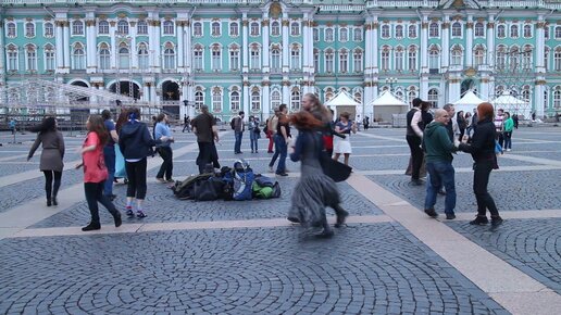Танцуют на Дворцовой площади в Санкт-Петербурге
