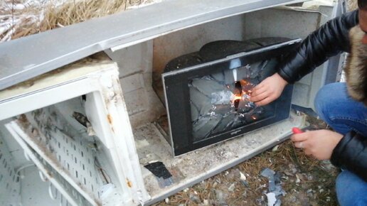 взорвали телевизор внутри холодильника)))название канала на ютубе The BANG заходите смотрите другие ролики