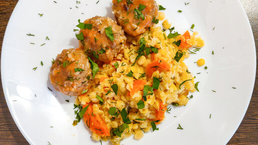 Необычный гарнир к тефтелям - горох (Я сомневалась, но получилось очень вкусно).