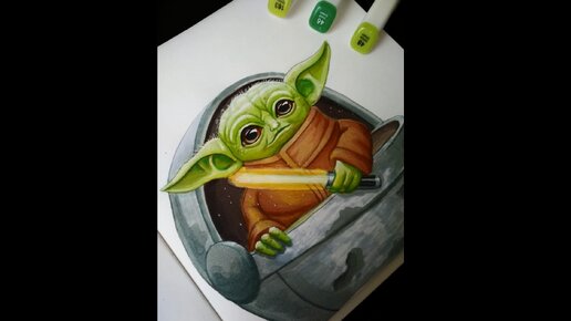 Рисуем малыша Йоду китайскими маркерами. Touchnew + Finecolour