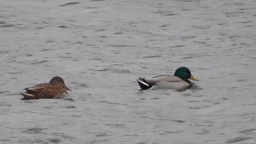 Утки в декабре на не замерзающем озере.