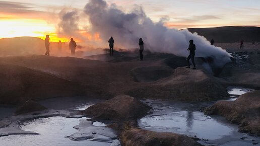 Жуткие фумаролы в боливийской пустыне на плато Альтиплано