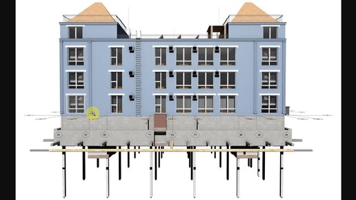 Проект четырехэтажного офисного здания с подземным паркингом и 2 лифтами