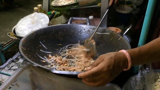 Уличная еда в Таиланде - пад тай с креветками в Паттайе