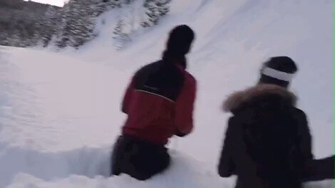 Лось прет как лось! Путешественники очень сильно испугались, что аж ушли в сугробы на половину.