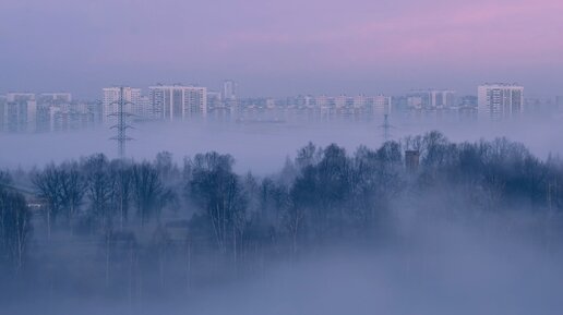Густой туман и невероятное зарево на небе. Это не ускоренное видео, это timelapse!