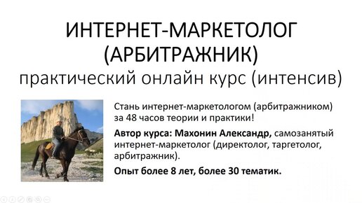 Презентация курса "интернет-маркетолог (арбитражник)" за 48 часов теории и практики!