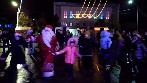 Новогодняя ночь в Рогачёве: горожане водят хоровод с Дедом Морозом вокруг ёлки