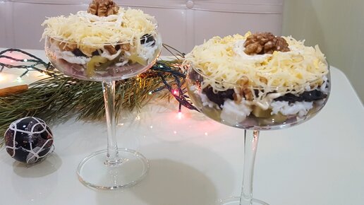ШИКАРНЫЙ СЛОЕННЫЙ САЛАТ-КОКТЕЙЛЬ "ПРИНЦЕССА" ДЛЯ ПРАЗДНИЧНОГО СТОЛА. СЪЕДАЕТСЯ ПЕРВЫМ И МОМЕНТАЛЬНО.