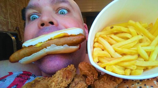 КУШАЮ KFC: ХОТ-ДОГ КУРИНЫЙ,ШЕФБУРГЕР,СТРИПСЫ