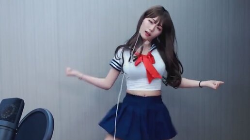 Японочка в школьной форме танцует на стриме