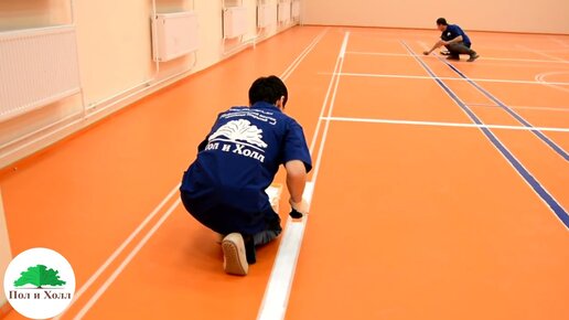 Полы для спортивных залов. Укладываем спортивный линолеум и наносим разметку.