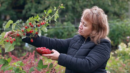 Ремонтантная малина Карамелька. Собираем сладкие ягоды до снега