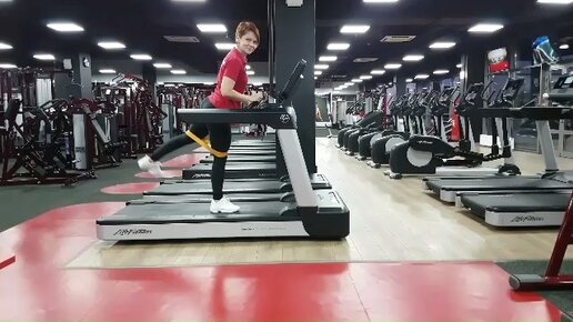 Видео: качаем ноги на беговой дорожке с помощью фитнес-резинки (!)
