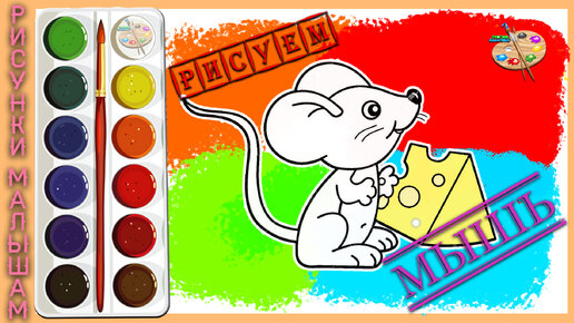 Как нарисовать мышку . Мультик раскраска МЫШЬ для малышей .Учим цвета