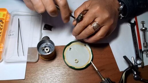 Откручиваем крышку опоры дужки рыболовной катушки.