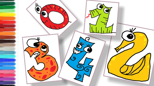 РИСУЕМ Весёлые цифры. Учим цифры и цвета , считаем от 0 до 4