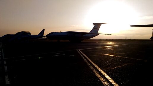 Ил-76 заруливает на стоянку в лучах заката. Симферополь 2016.